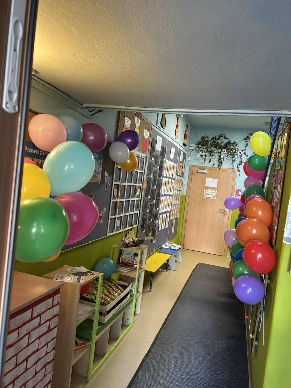 Dziś w przedszkolu panowała wesoła atmosfera – było głośno, kolorowo i pełno śmiechu! Na dzieci czekały atrakcje na placu zabaw oraz w sali: dmuchaniec, basen z kulkami i wiele innych niespodzianek. Przedszkolaki mogły także skosztować specjalnie przygotowanego menu, w którym znalazły się zdrowe owocowe przekąski oraz pyszny obiadek – rybne nuggety z frytkami, a na podwieczorek ciepłe lody :-)