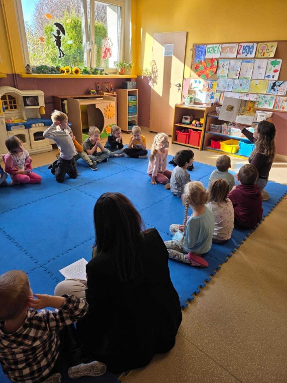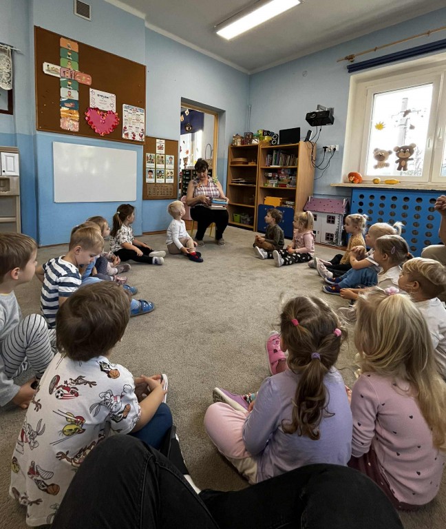 5 listopada świętowaliśmy Dzień Postaci z Bajki. Z tej okazji odwiedziły nas panie bibliotekarki z Biblioteki Filia nr 10 w Rybniku-Niedobczycach, które przeprowadziły ciekawe warsztaty czytelnicze. Dzieci miały okazję wysłuchać bajek, porozmawiać o swoich ulubionych bohaterach, a także wykonać kolorowe zakładki do książek.