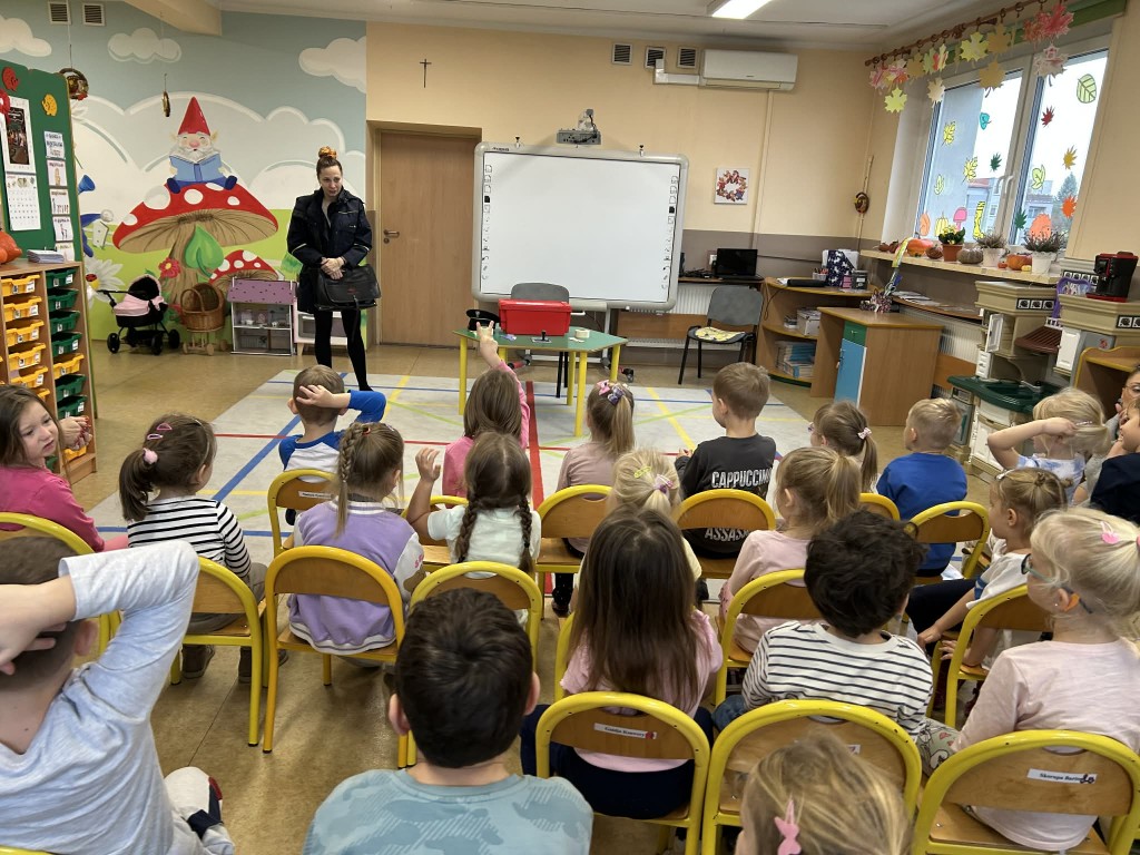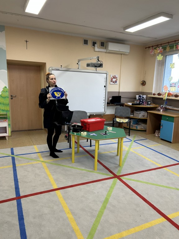 W naszym przedszkolu odbyło się niezwykle ciekawe spotkanie z panią Klaudią – pracownicą Poczty Polskiej, a prywatnie mamą jednej z naszych przedszkolaczek. W ramach projektu „Pocztowe Przygody” pani Klaudia opowiedziała dzieciom o swojej pracy oraz o zadaniach listonosza.