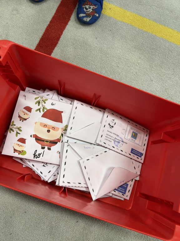 Przedszkolaki miały również okazję wysłać własnoręcznie przygotowane listy do świętego Mikołaja, co wywołało wiele radości i ekscytacji.