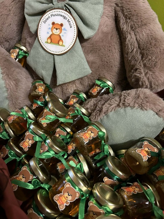 Z okazji Dnia Pluszowego Misia na wszystkich przedszkolaków czekała słodka niespodzianka – słoiczek miodu do zabrania do domu.