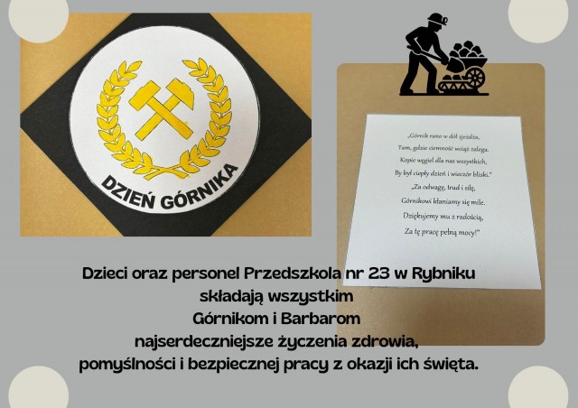 Panu Rafałowi i Panu Mateuszowi oraz całemu górniczemu bractwu życzymy dużo zdrowia, siły i pomyślności w ich wymagającej pracy - niech Święta Barbara ma ich zawsze w swojej opiece.