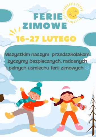 Wszystkim naszym przedszkolakom życzymy udanych i bezpiecznych ferii.